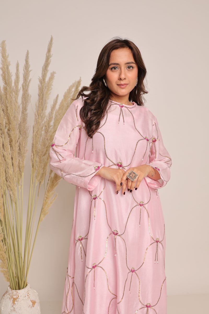 Luxurious charm. Our pink cord set with hand embroidery is the perfect blend of elegance and playfulness